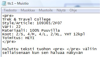 Trek & Travel College Style/Article: 109365/2F07 Väri: 22 Materiaali: 100% Puuvilla Koot: 2/S, 4/M, 4/L, 2/XL, YHT 12kpl Toimitus: HETI